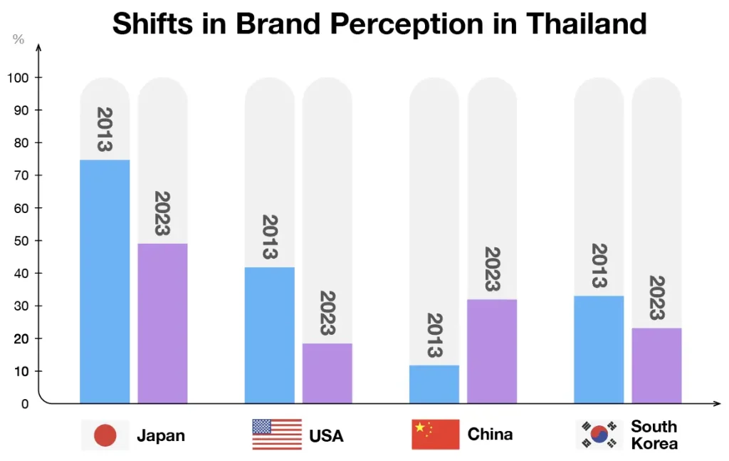 つまりタイ市場では、日本ブランドの評価が急落したというより、競合ブランドの存在感が大きく伸びたと理解する方が実態に近いと言えます。